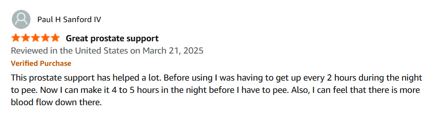 This is my third time purchasing ProstaVive. I first ordered a three-bottle package from the official website and had a very positive experience. After trying another purchase elsewhere, I decided to return to the official site, where I once again noticed the same level of comfort and consistency, especially at night.